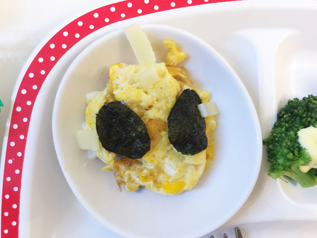 息子、娘ともほとんど同じで、トーストしたパン、スクランブルエッグにチキンナゲット、チーズとハムとレタス、ゼリー。息子はこれに加えてミニドーナツ。