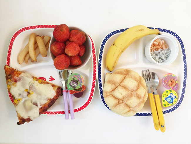 メロンパンやピザは、昨日のうちに妻が買っておいたもの。